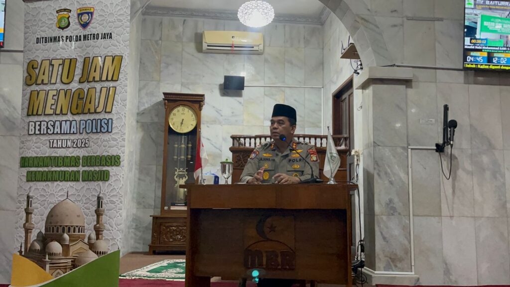 Jakarta Selatan, 15 Juli 2025 — Dalam rangka memperkuat sinergi antara kepolisian dan masyarakat, Direktorat Binmas Polda Metro Jaya kembali menggelar kegiatan bertajuk Satu Jam Mengaji Bersama Polisi. Kegiatan ini berlangsung di Masjid Jami Baiturrahmah, Komplek Departemen Dalam Negeri I, Jalan Agraria, Pondok Labu, Cilandak, Jakarta Selatan, Selasa (15/7/2025) petang.